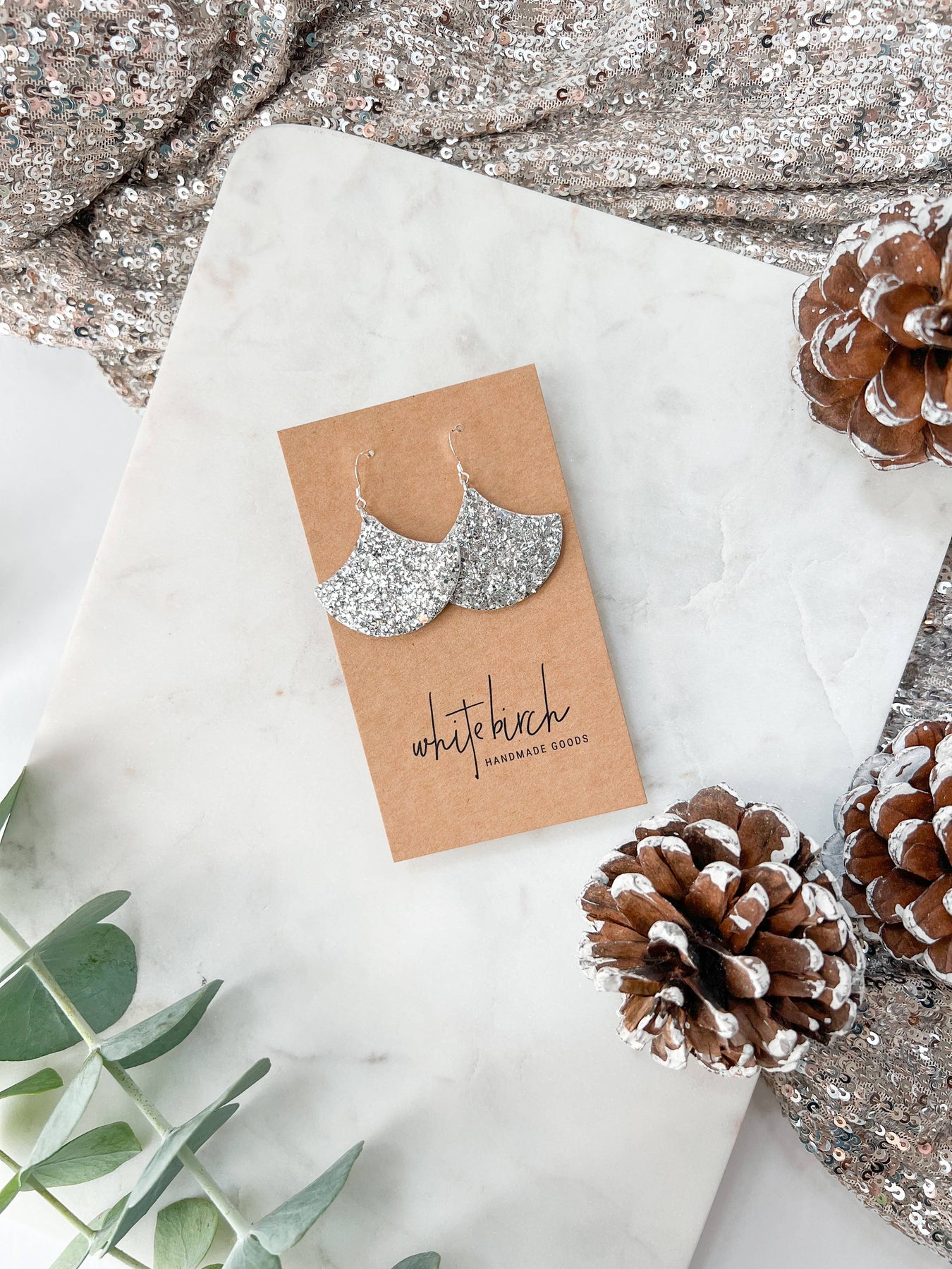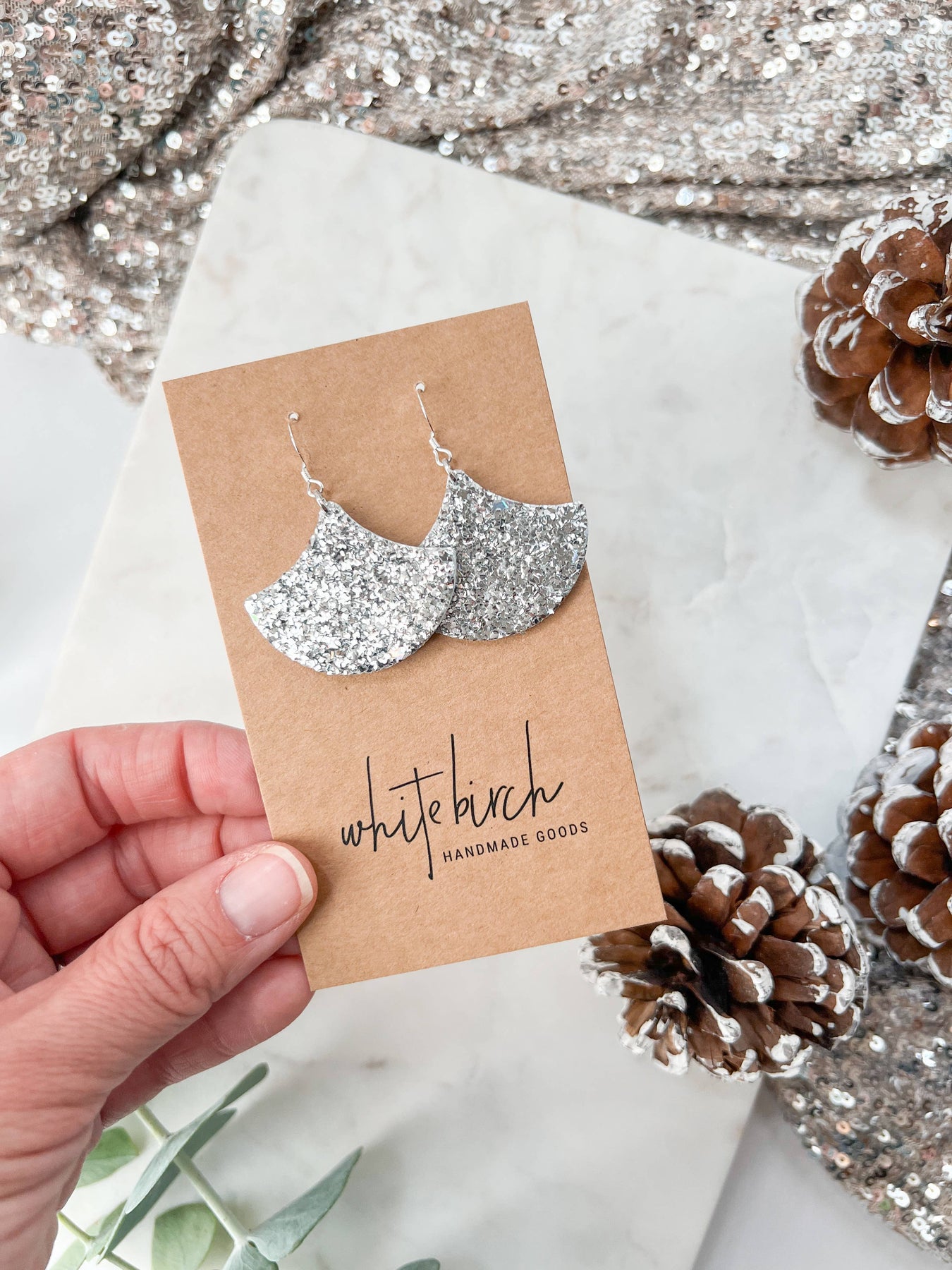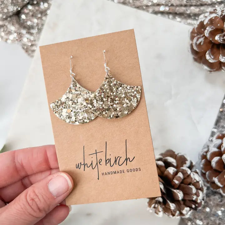 Make every moment shine with these Glitter Leather Fan Earrings — bold, lightweight, and designed to dazzle. Handcrafted from premium metallic leather with a shimmering glitter finish, these earrings catch the light beautifully, adding instant sparkle to any outfit.