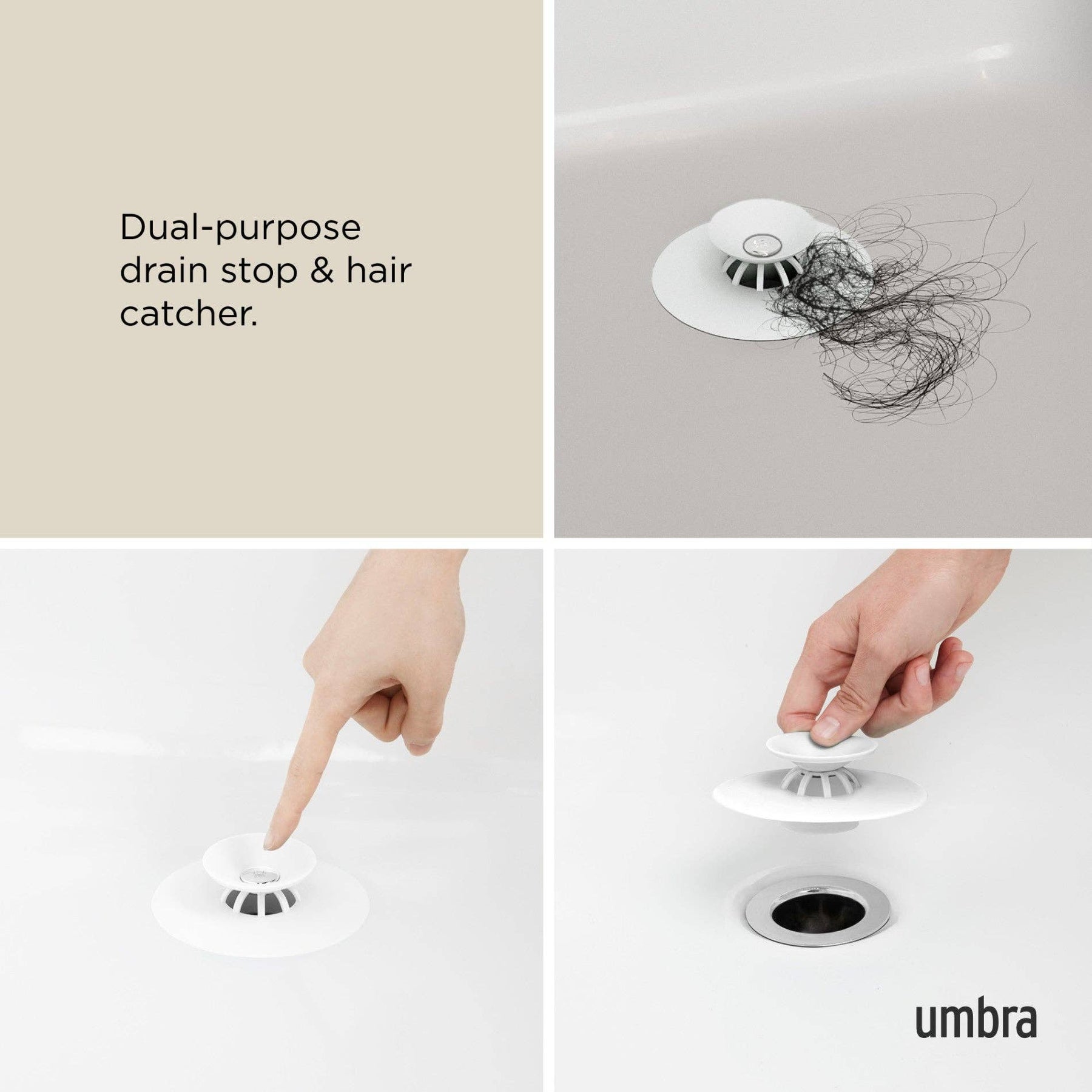 Say goodbye to clogged shower drains and tub stoppers that don't work with Flex drain stop and hair catcher you prevent hair from clogging your drain with this drain stop and hair catcher in one. Once inserted in your bathtub drain, simply push down on the center to convert it to either a hair catcher or tub stopper.