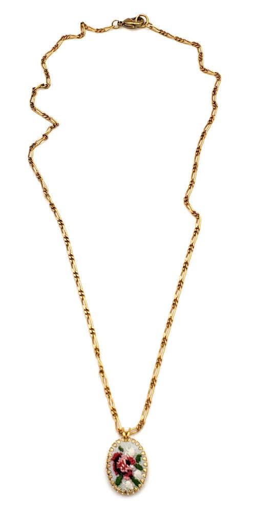 Rose Garden Vintage Embroidered Necklace